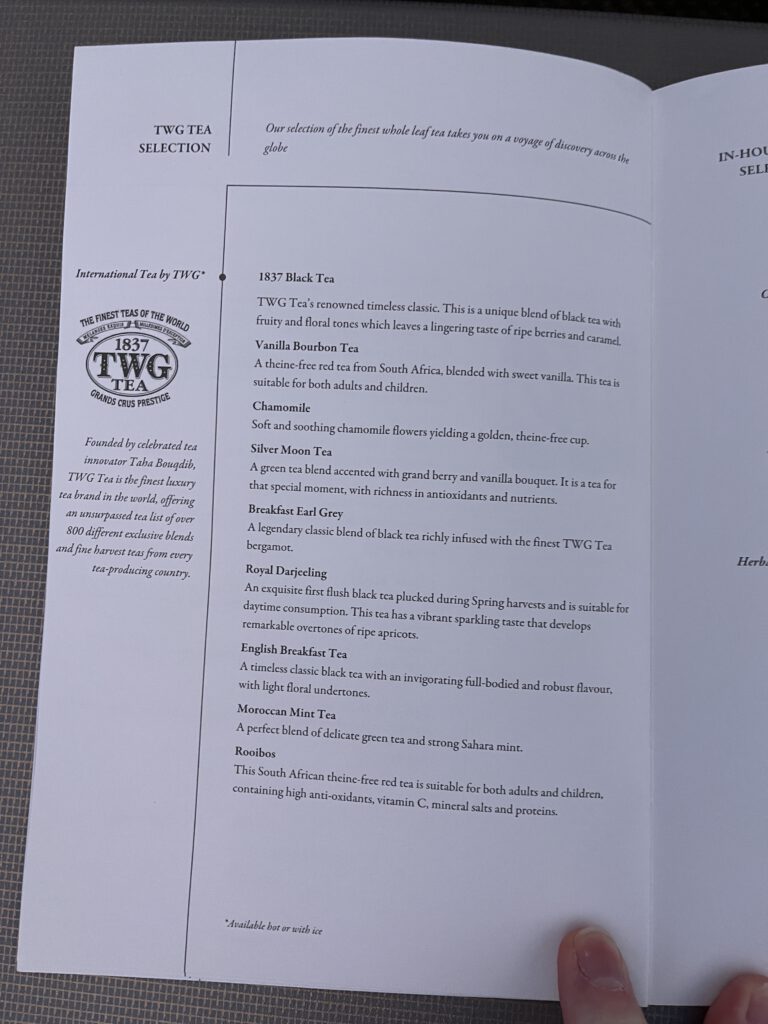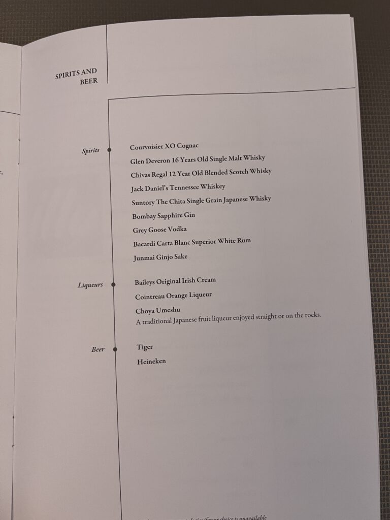Also Essen. Erstmal die Speise- und Getränkekarte. Die hab ich vor allem mal deswegen fotografiert, weil ich so viel Auswahl noch nie gesehen habe: