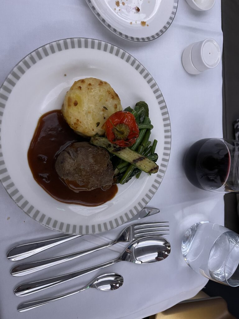 Und das Essen selbst war auch mega gut (Aaron hatte Spagetti als vorbestelltes Kids Menü, Nara hatte Fisch und ich Rinder Filet).