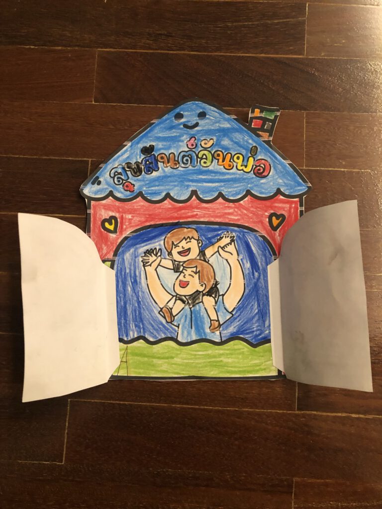 Der Vatertag fällt in Thailand zusammen mit dem Geburtstag des verstorbenen thailändischen Königs Bhumibol Adulyadej und wird als Nationalfeiertag am 5. Dezember gefeiert. Aaron hat zusammen mit den anderen Kindern anlässlich dessen etwas tolles für Papa gebastelt:
