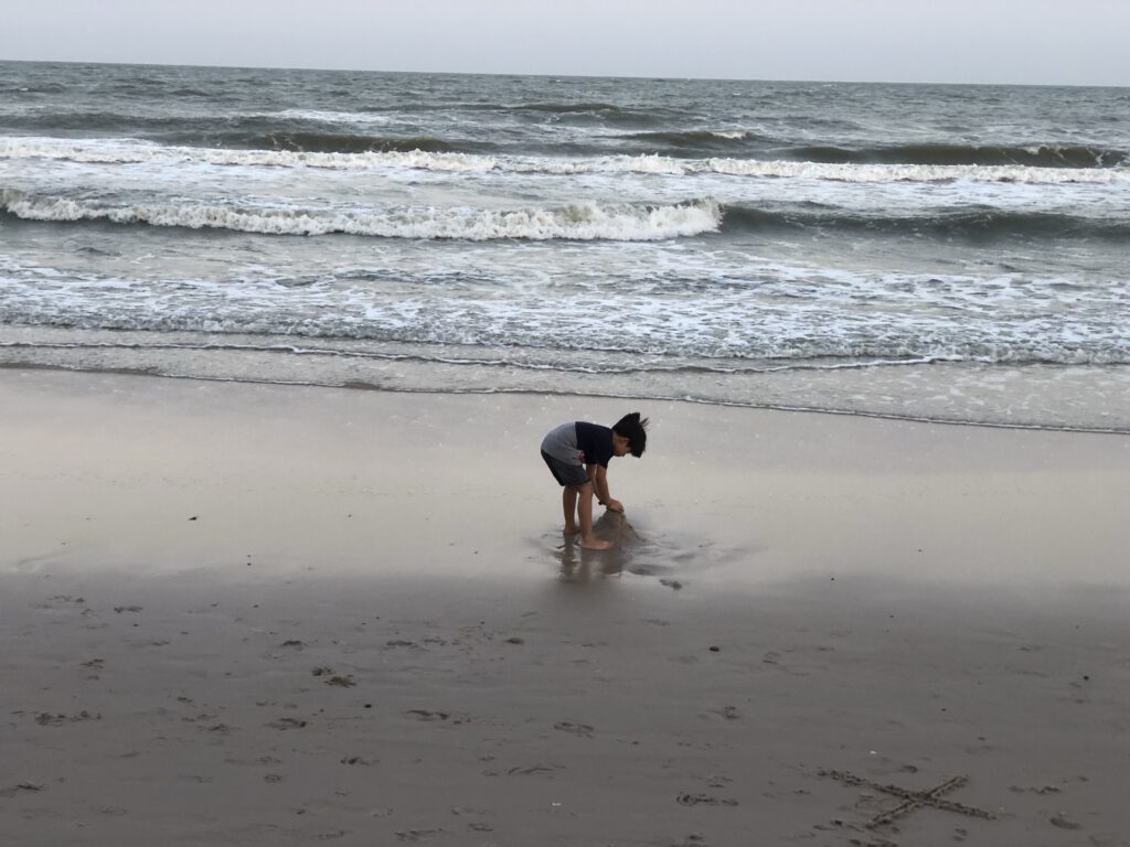 Das Wochenende war ziemlich stürmisch hier in der Nacht sind die Temperaturen auf 20 Grad gefallen. Aber Aaron findet es trotzdem toll: